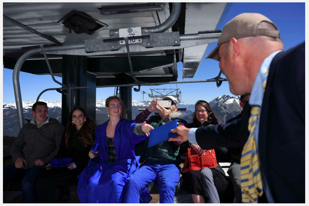 When the pandemic forced high schools across the country to cancel rites of passage like prom and graduation, one local school got creative: The Peak School, based in Frisco, hosted its graduation ceremony on Copper’s Super Bee chairlift in East Village, minimizing safety concerns by hosting the event outdoors and with more than 6 feet of physical distancing between groups.